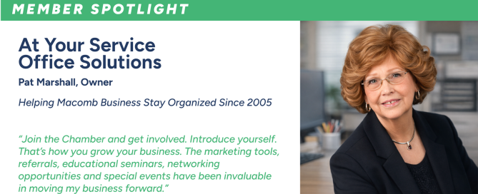 Miembro destacado: Pat Marshall, de Your Service Office Solutions. Tras una carrera de 28 años como asistente administrativa en el Departamento de Policía de Mount Clemens, Pat Marshall no estaba dispuesta a bajar el ritmo; al contrario, estaba lista para [...]